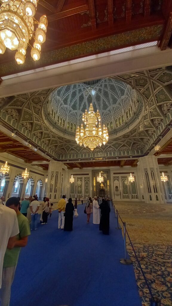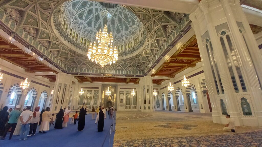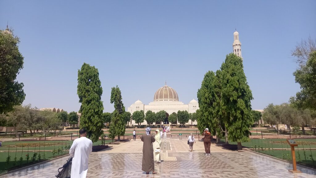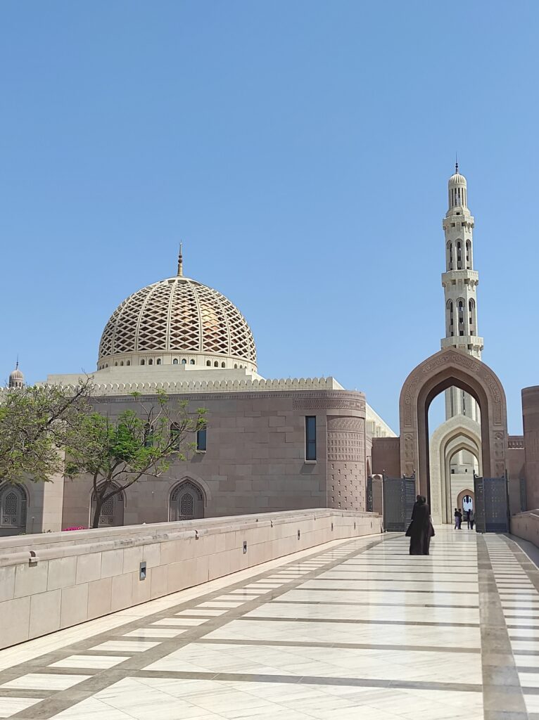 Dzień warto rozpocząć wcześnie, gdyż codziennie (za wyjątkiem piątku) dla niemuzułmańskich zwiedzających jest imponujący Wielki Meczet Sułtana Qaboosa. Ten meczet to największa w Maskacie i Omanie, a trzecia pod względem wielkości na świecie, prawdziwa perła islamskiej architektury. Zbudowany z białego marmuru, może pomieścić aż 20 000 wiernych. Zachwyca ogromnym, ręcznie tkanym dywanem oraz monumentalnym żyrandolem z kryształów, które podkreślają jego majestatyczne wnętrze. Meczet otaczają piękne ogrody, a pięć minaretów symbolizuje filary islamu. Choć jest miejscem modlitwy, dostępny jest także dla turystów innych wyznań, oferując wyjątkową okazję do poznania omańskiej kultury i duchowości w niezwykle harmonijnym otoczeniu. Zwiedzanie meczetu jest bezpłatne.