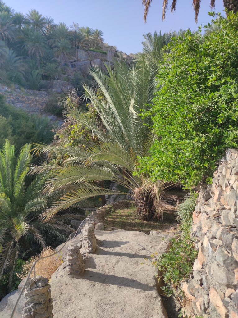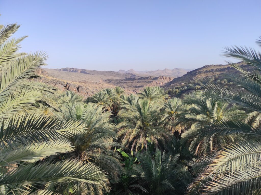 Z punktu widokowego zaczynamy zjazd krętą asfaltową drogą, która prowadzi nas w stronę przedmieść malowniczego miasteczka Al-Hamra. To miejsce, pełne uroku i tradycji, ma ponad 400-letnią historię, a jego zabudowa z suszonej cegły oraz stare domy z okresu Ya’aruba przenoszą nas w czasie. Al-Hamra zachwyca również imponującymi widokami na góry Al-Hadżar, które stanowią doskonałe tło dla tego wyjątkowego miejsca. Warto zatrzymać się tu na chwilę, aby odwiedzić muzeum Bait Al Safah, które pozwala odkryć lokalną kulturę i historię.