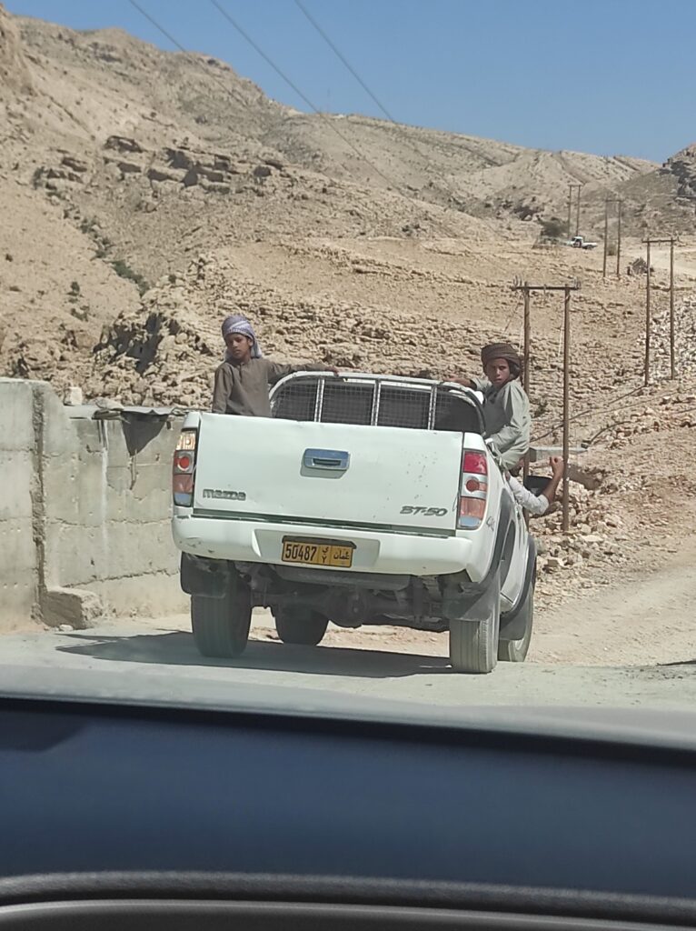 czym podróżować? – polecamy samochód SUV lub 4×4! poza międzynarodowymi wypożyczalniami w Muskacie z łatwością znajdziecie kilka lokalnych wypożyczalni; ich plusem są uproszczone formalności, niższe ceny i brak konieczności podawania karty kredytowej; dobrze jest wziąć dodatkowe ubezpieczenie; my polecamy MSM Muscat Cars; mimo opóźnienia na lotnisku firma dostarczyła dobry samochód który sprawdził się w każdych warunkach (Hyundai Santafe); uważajcie na progi zwalniające i na fotoradary (jednych i drugich jest MNÓSTWO)
